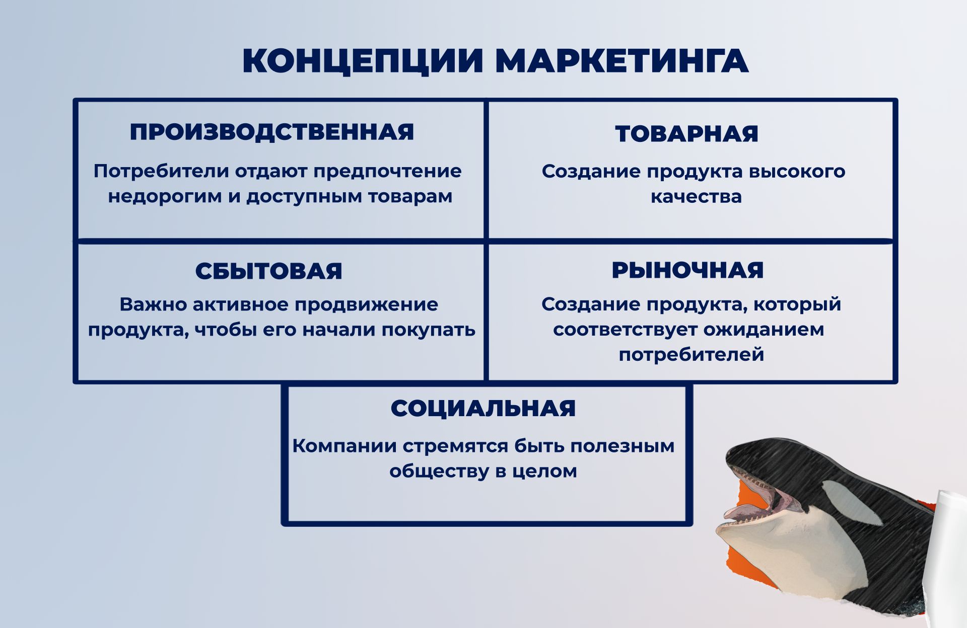 Концепции маркетинга: примеры, основные виды и методы применения.